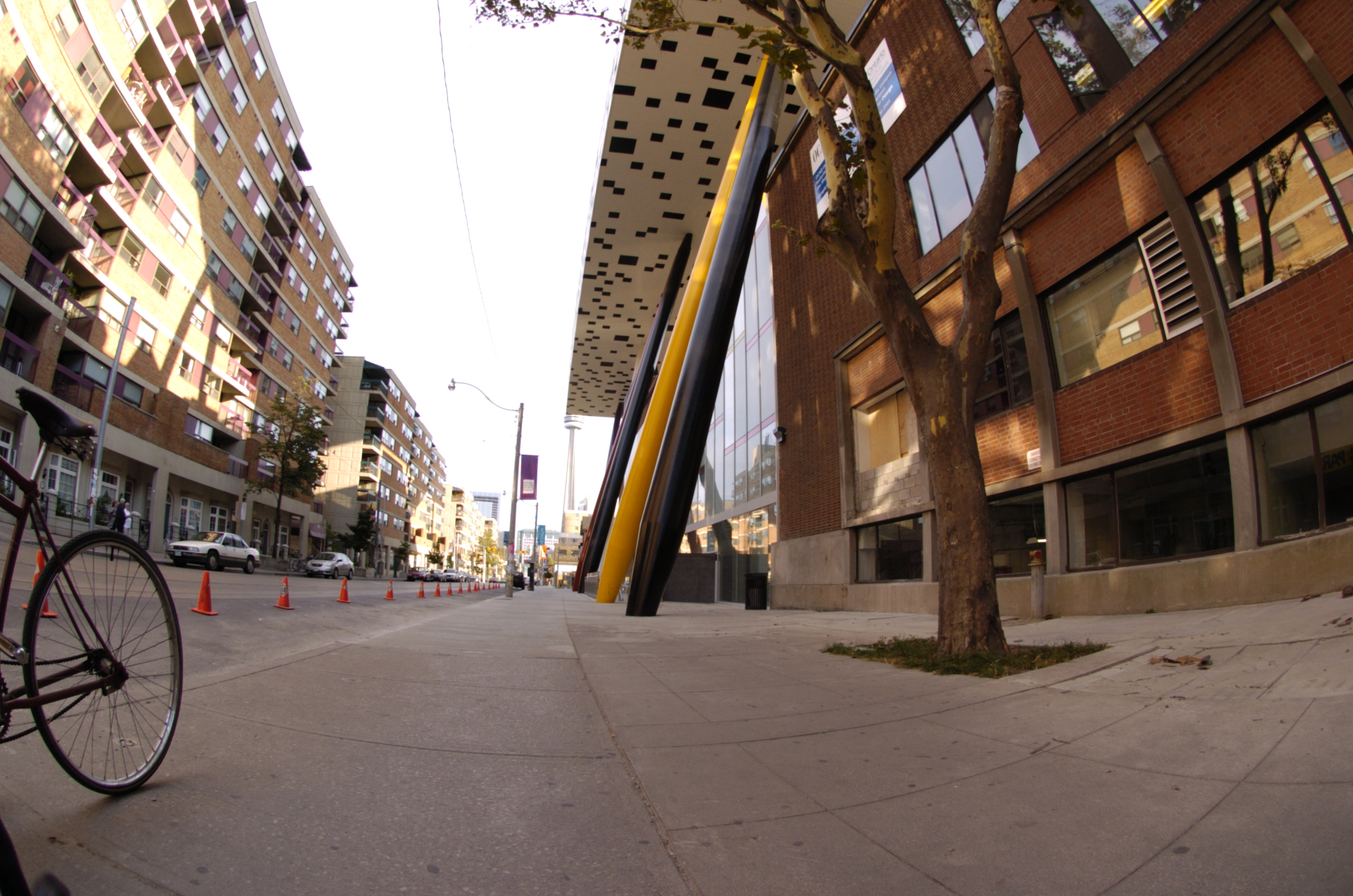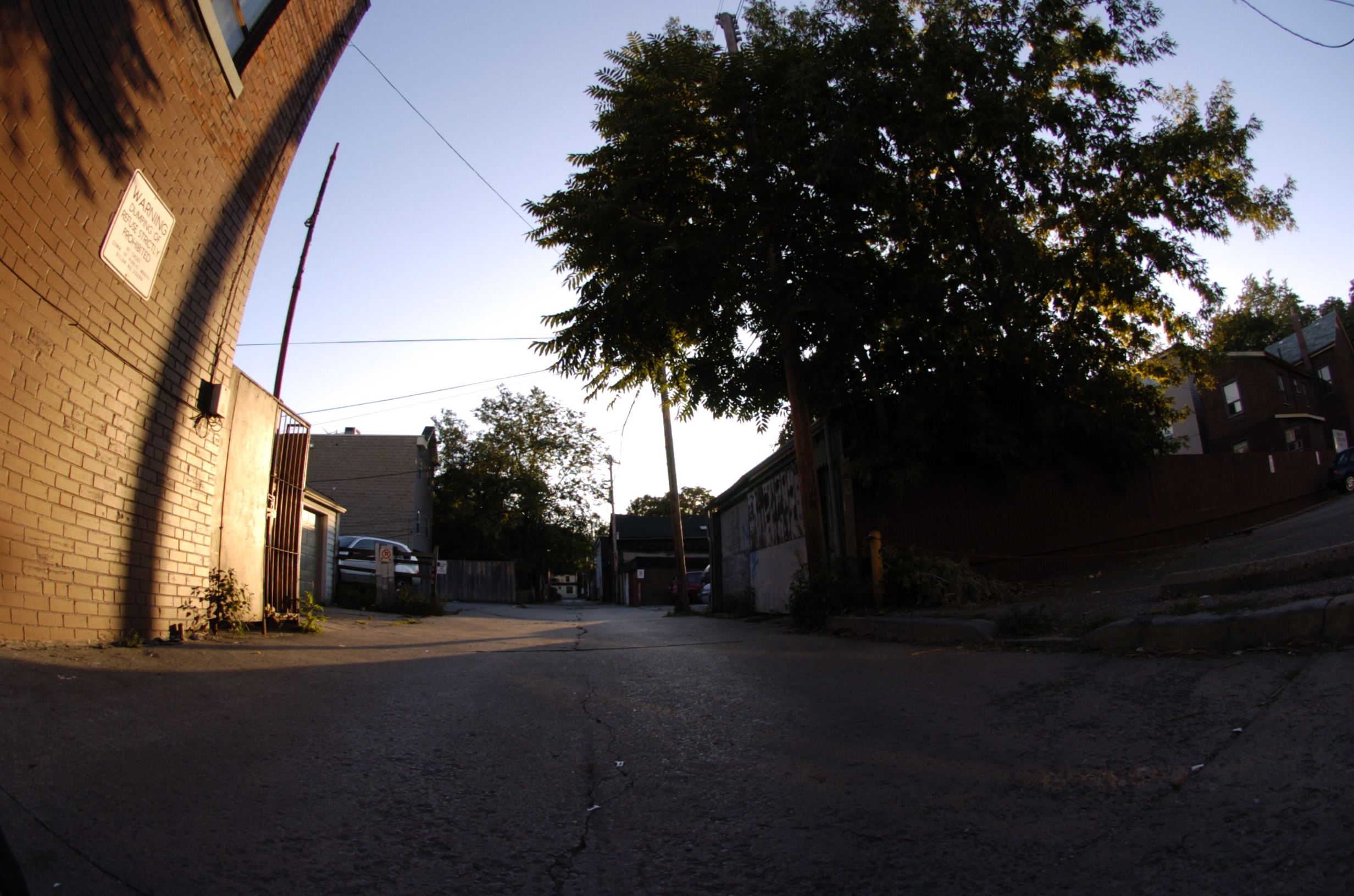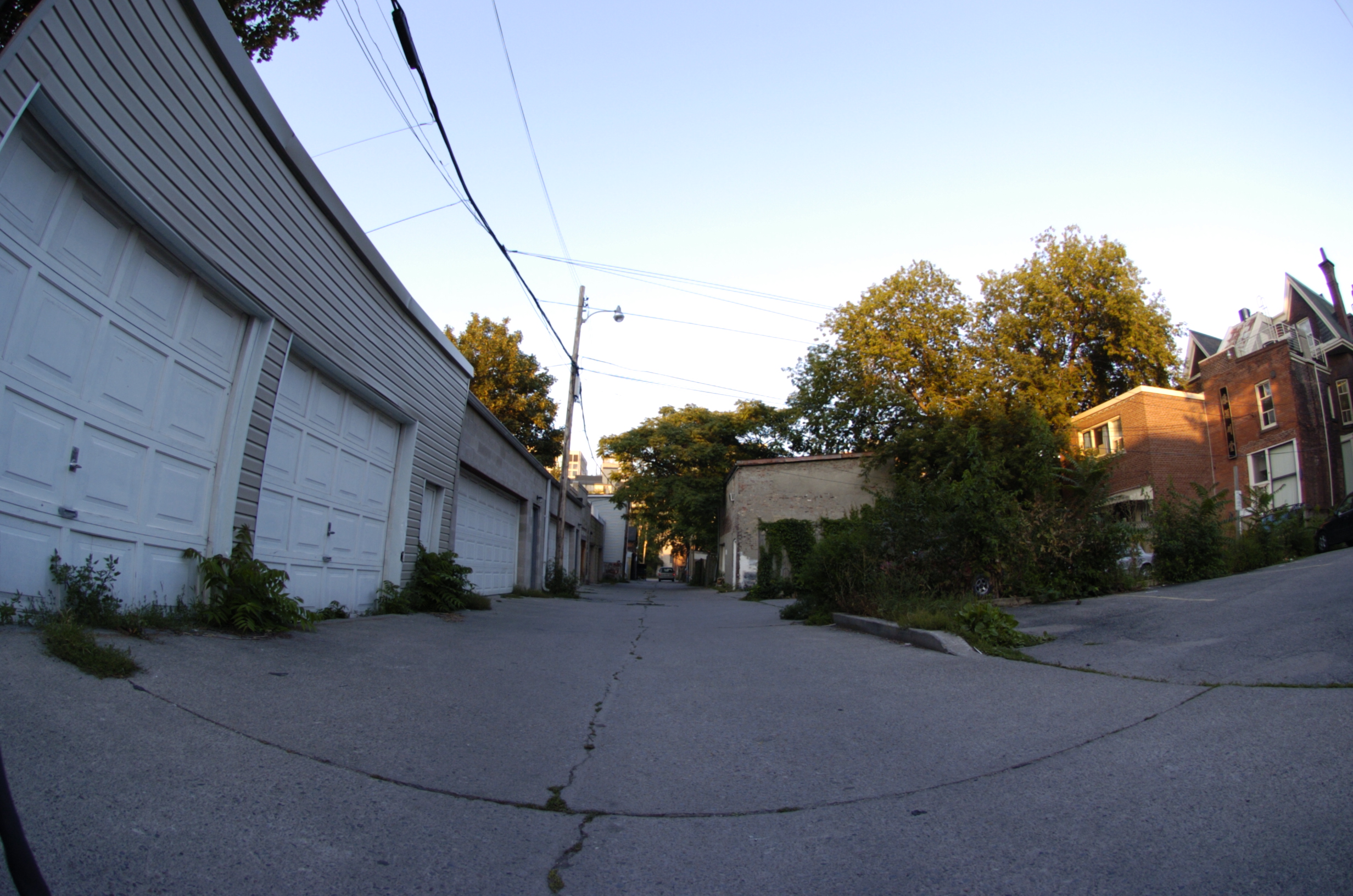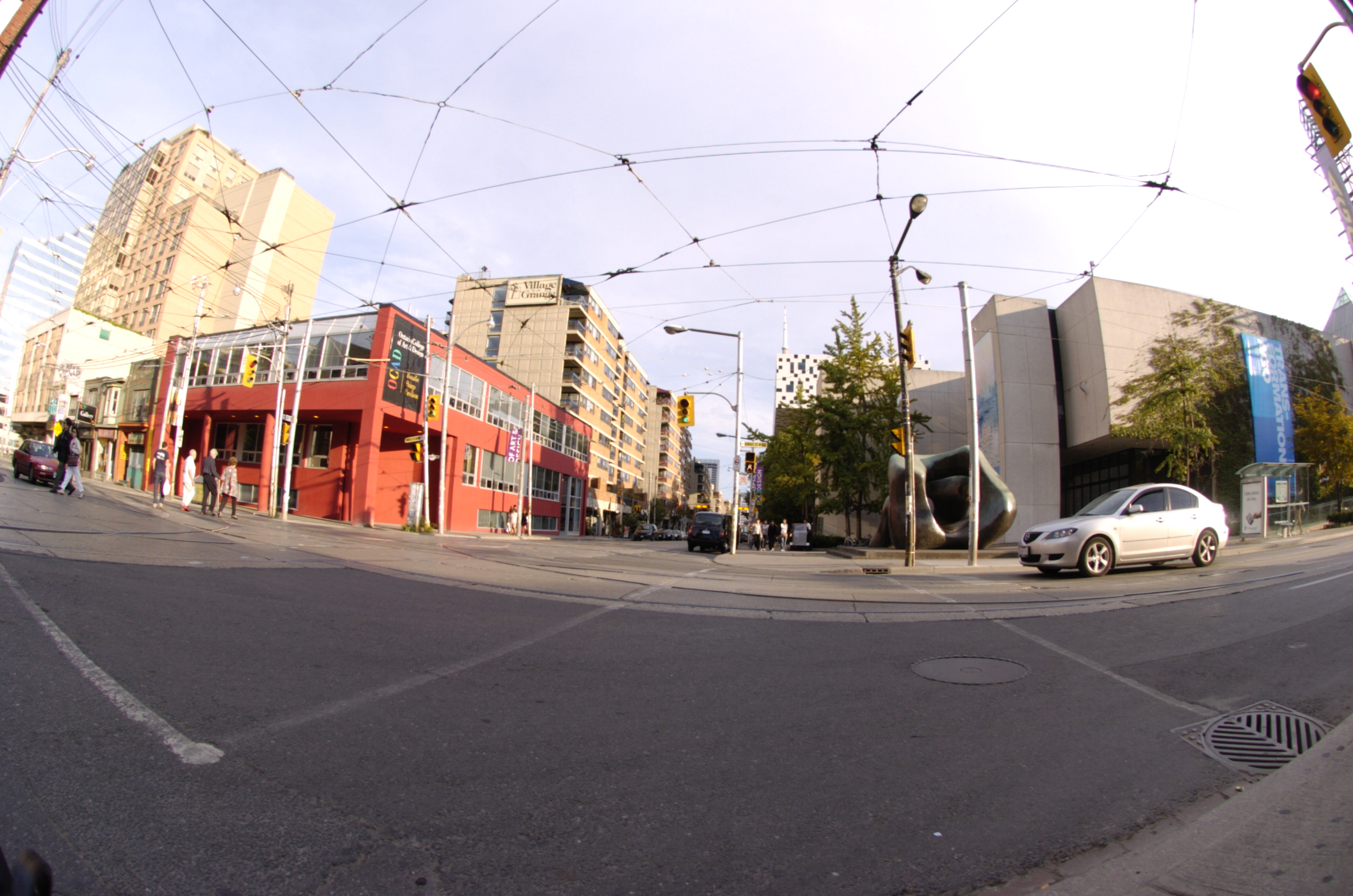 A fisheye lens provides a 180 degree field of view of subject matter