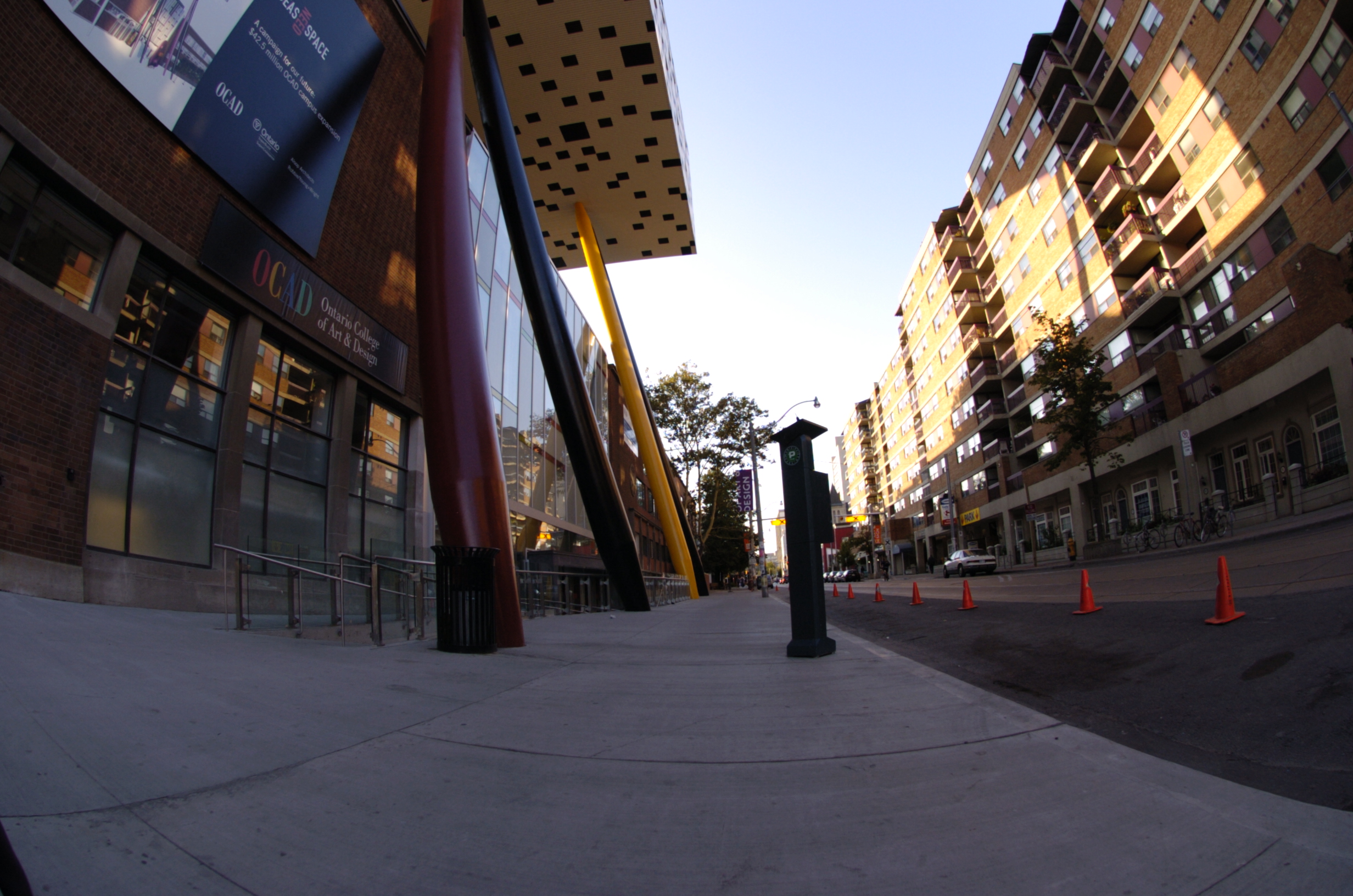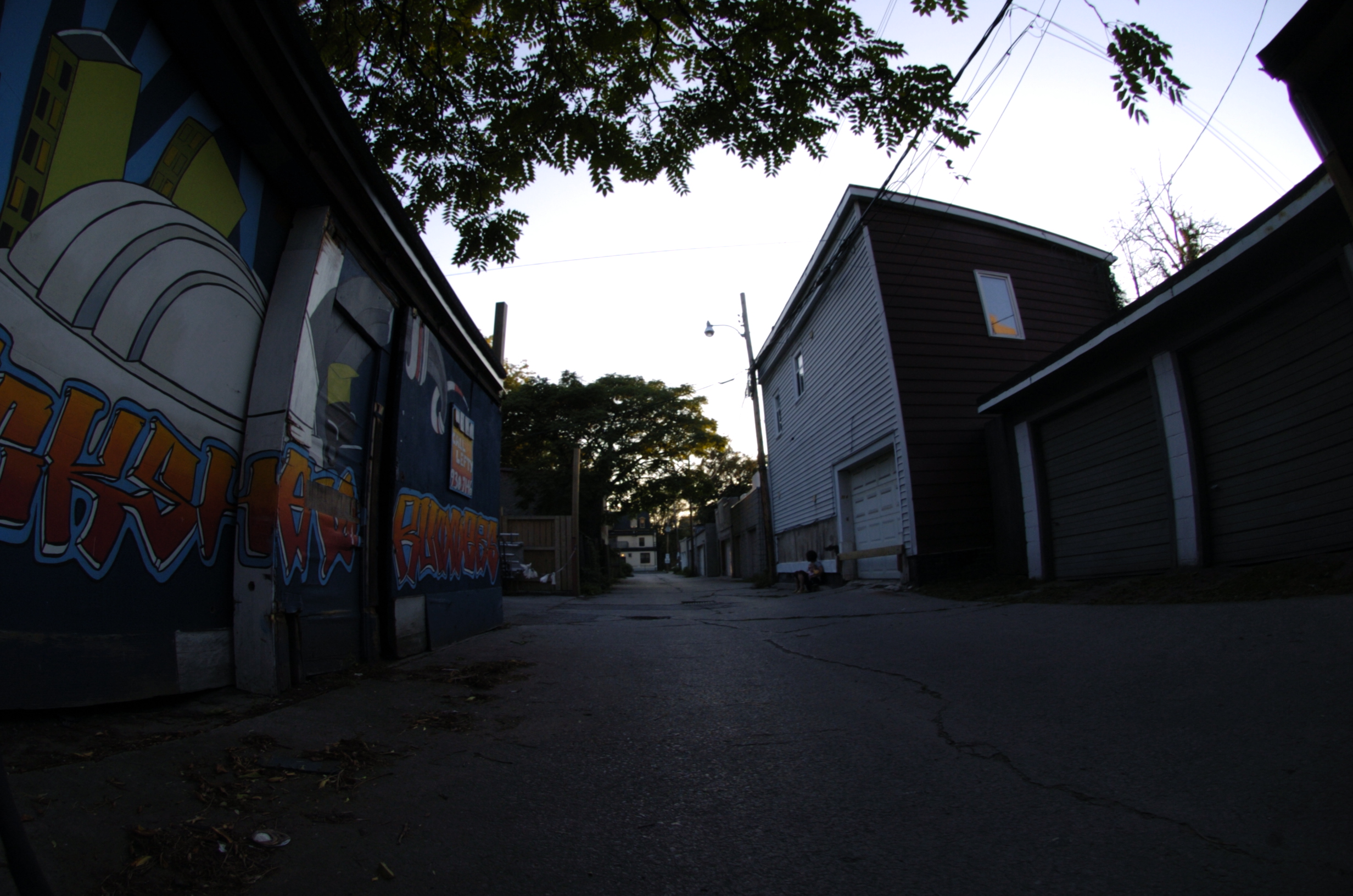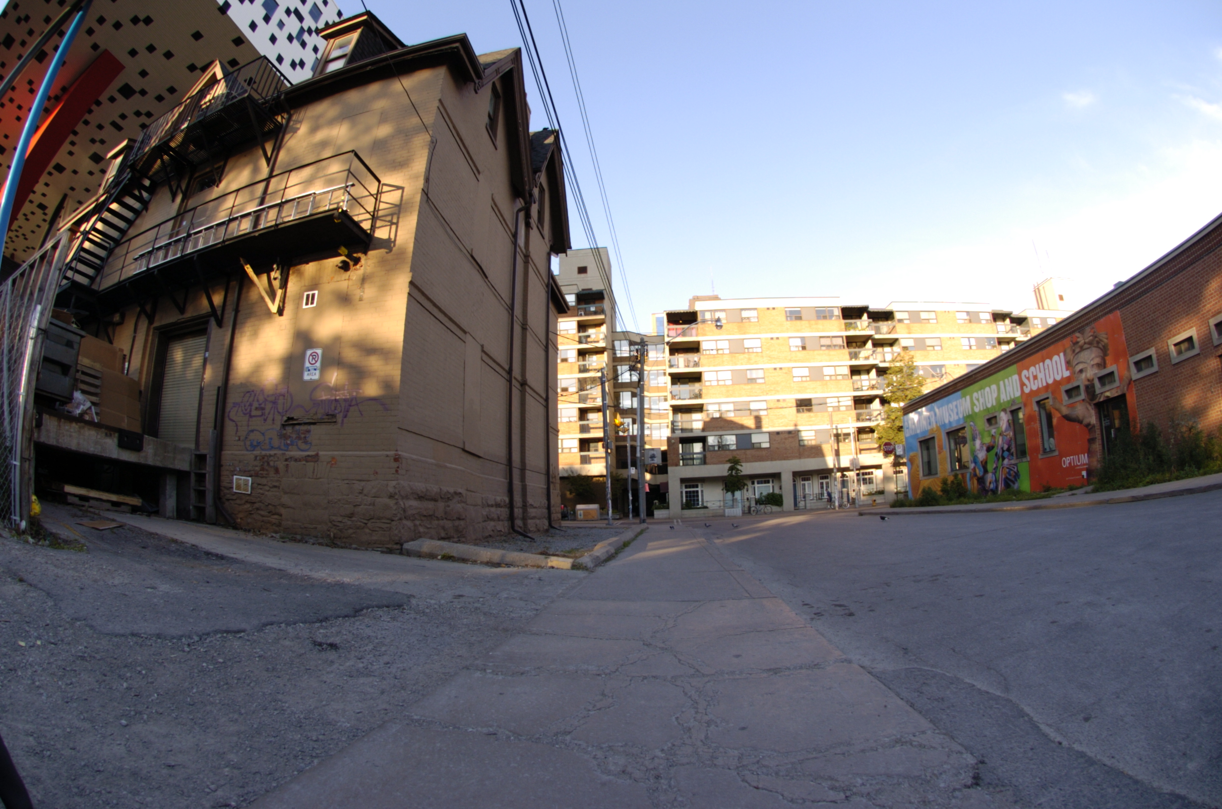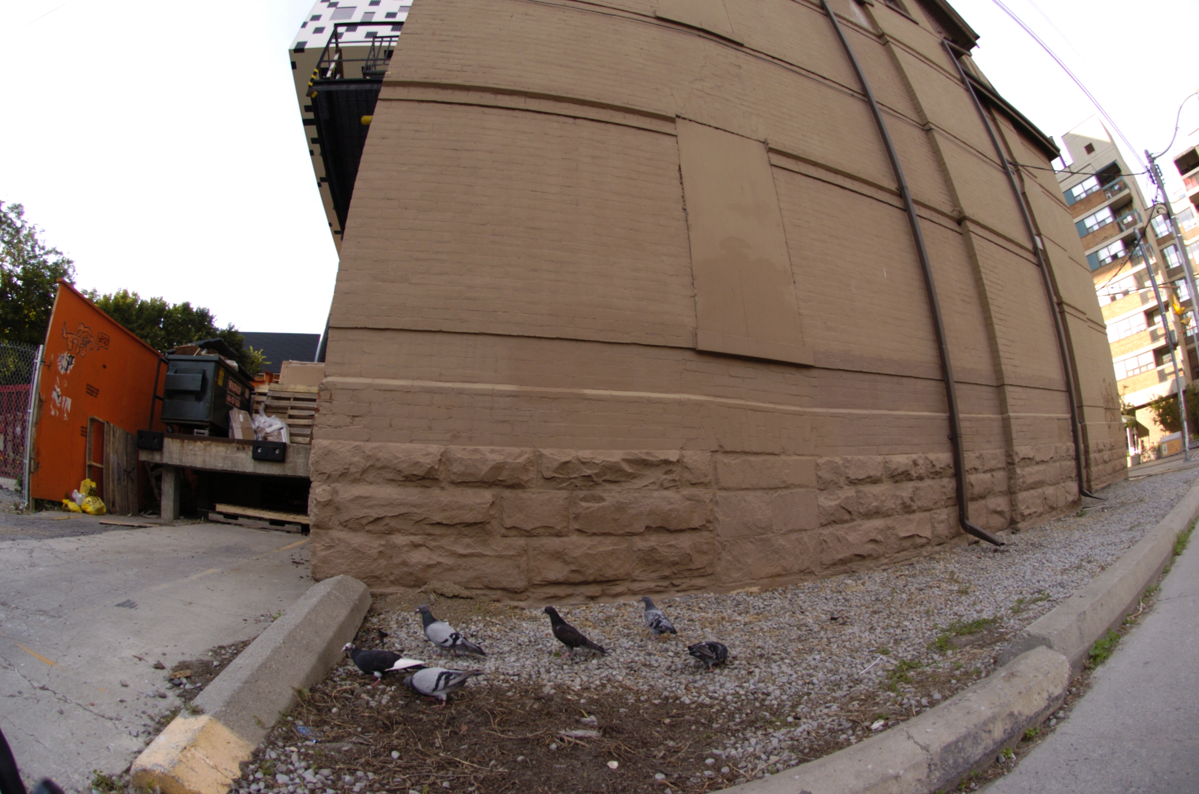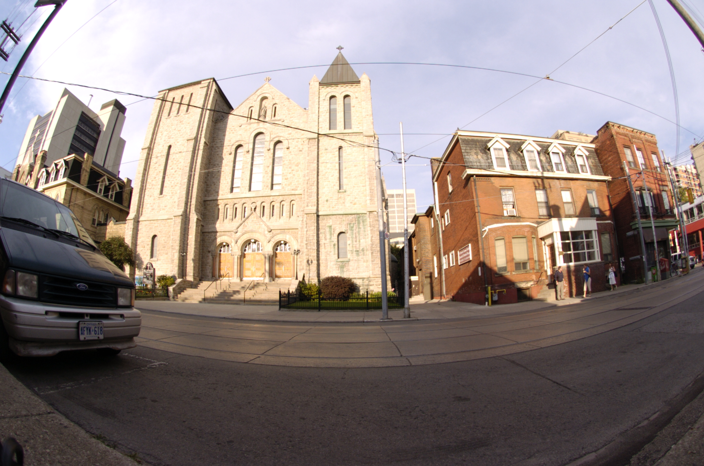 A fisheye lens provides a 180 degree field of view of subject matter