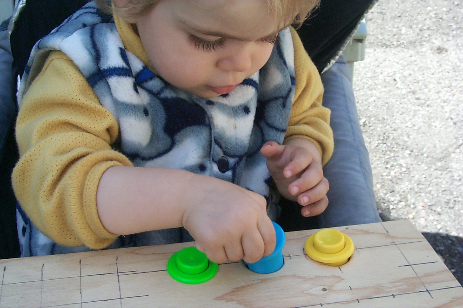 while seated in the stroller, as shown below: