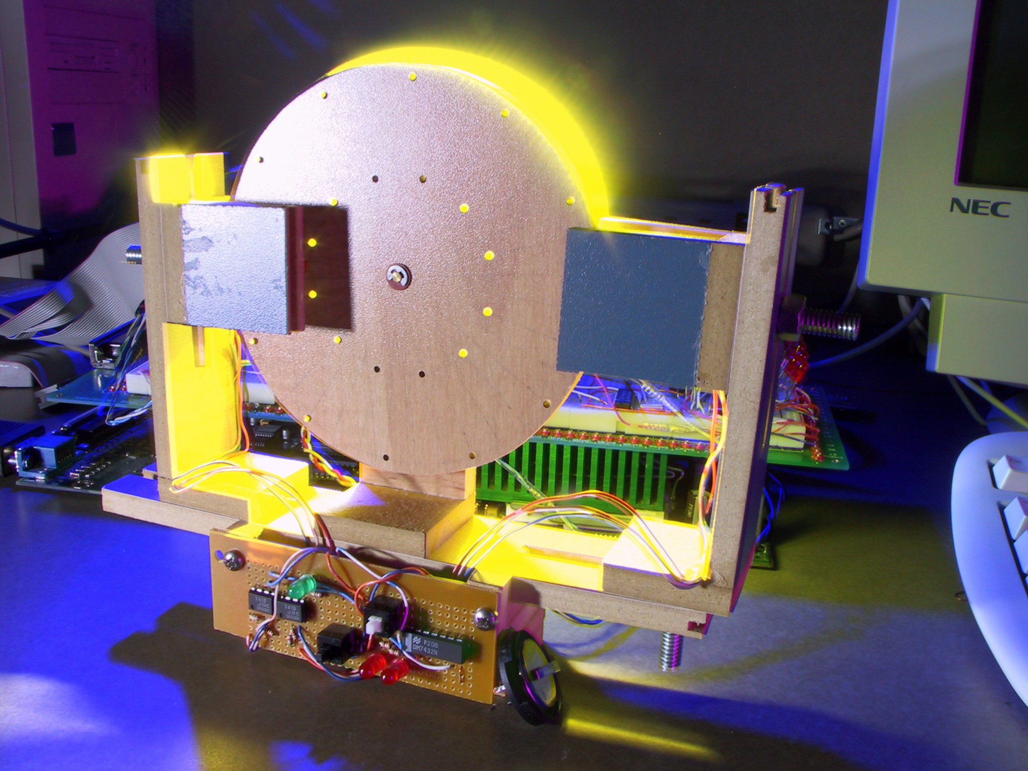 plotter, made from two pepsi cans, and parts from salvaged videocassette recorder: