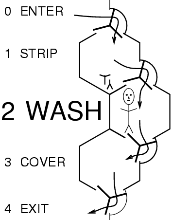 The walls of the hexagonal triage/observation room are made