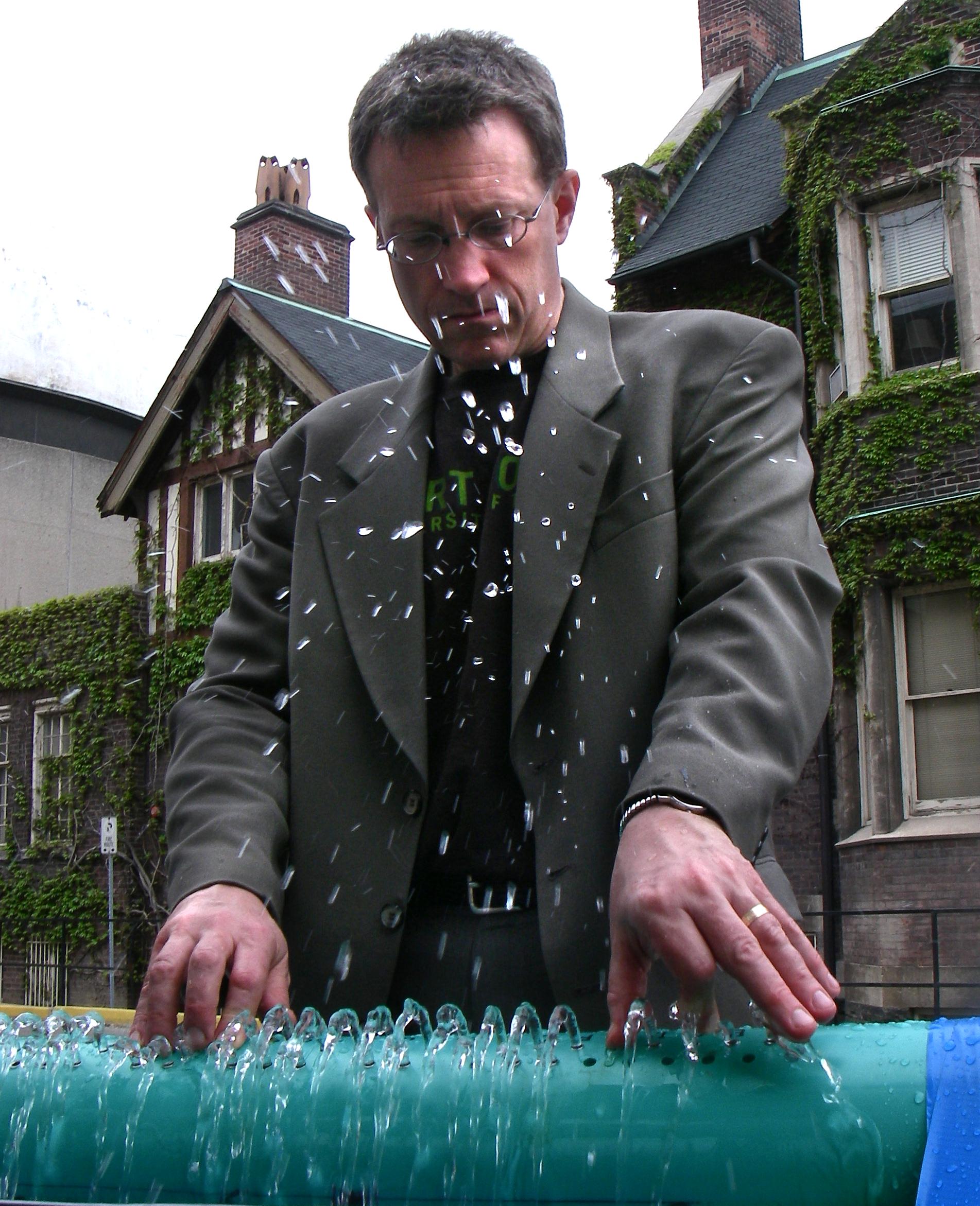 Thursday afternoon, 2006 May 4th, showing the Hydraulophone to Gage Averill and others at the Faculty of Music