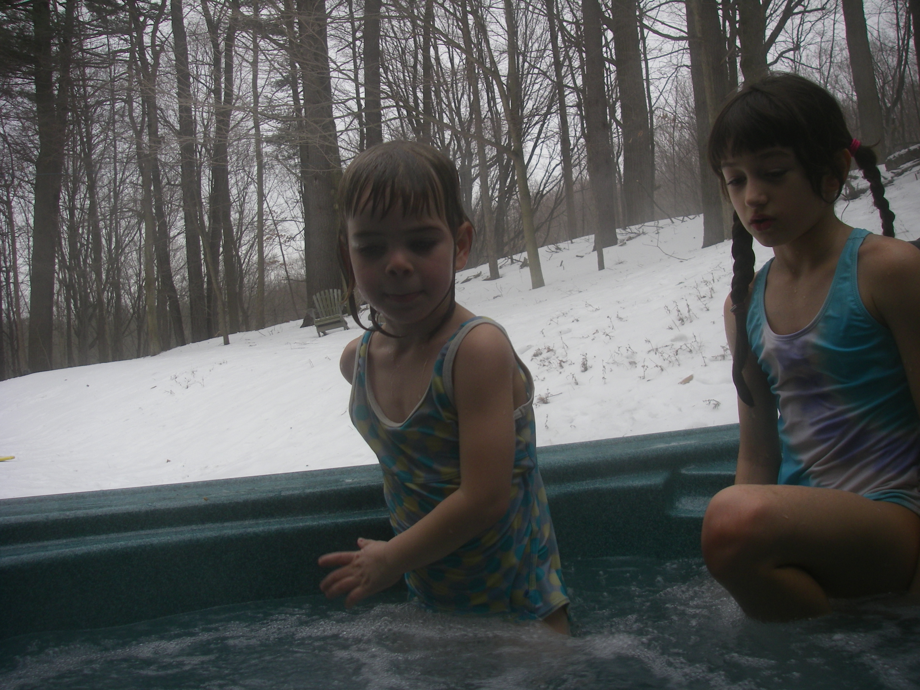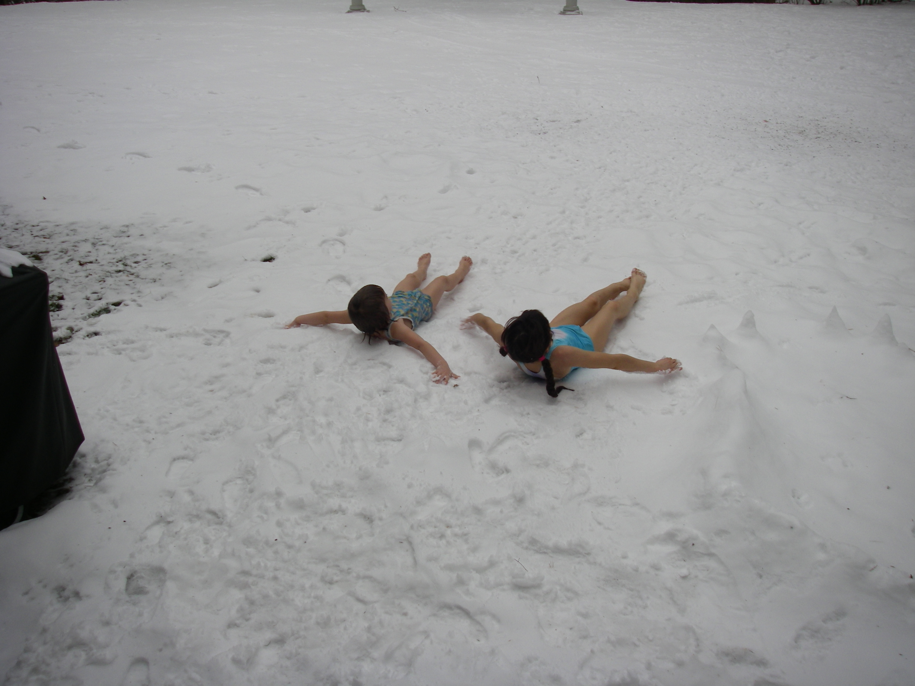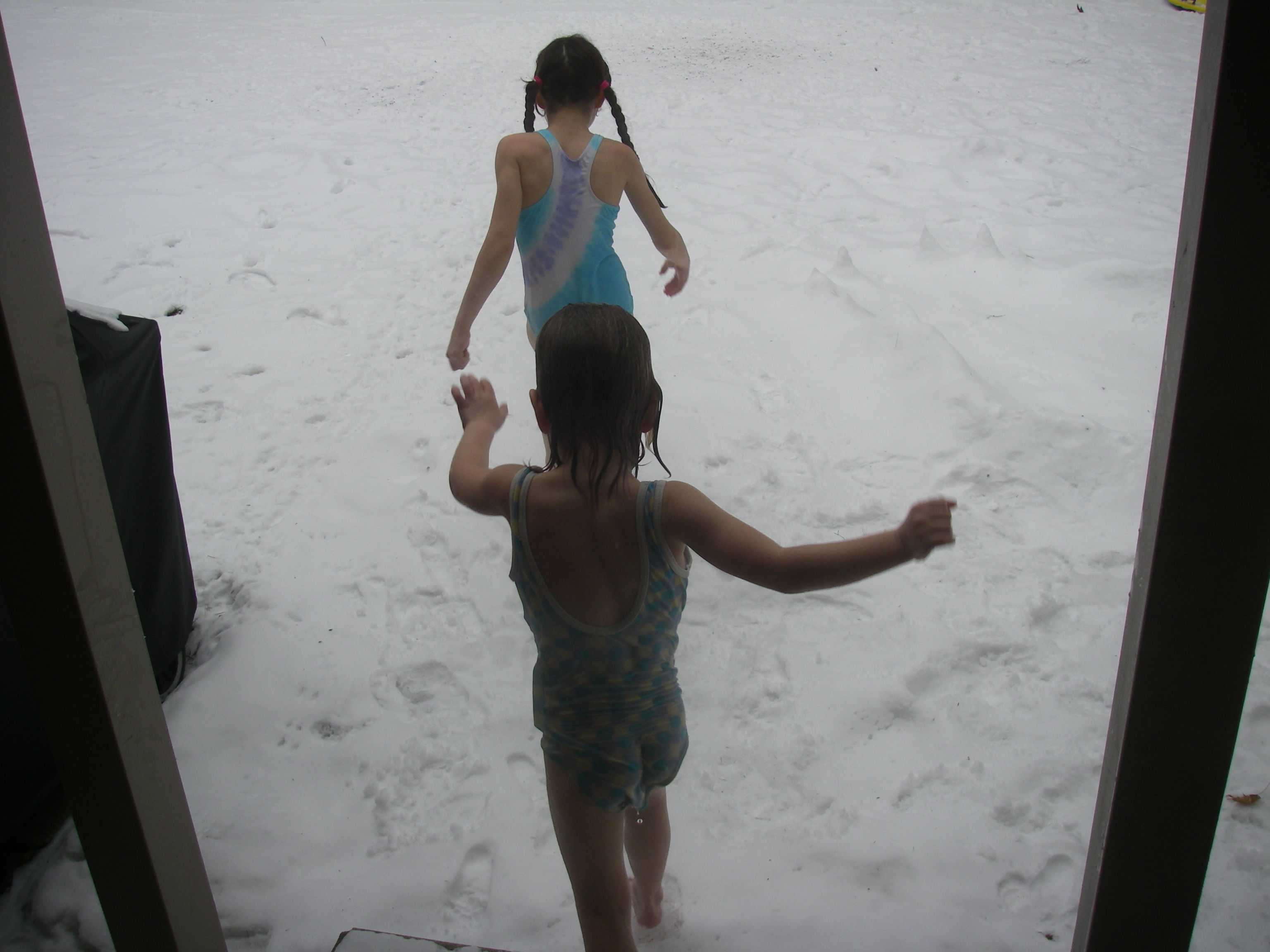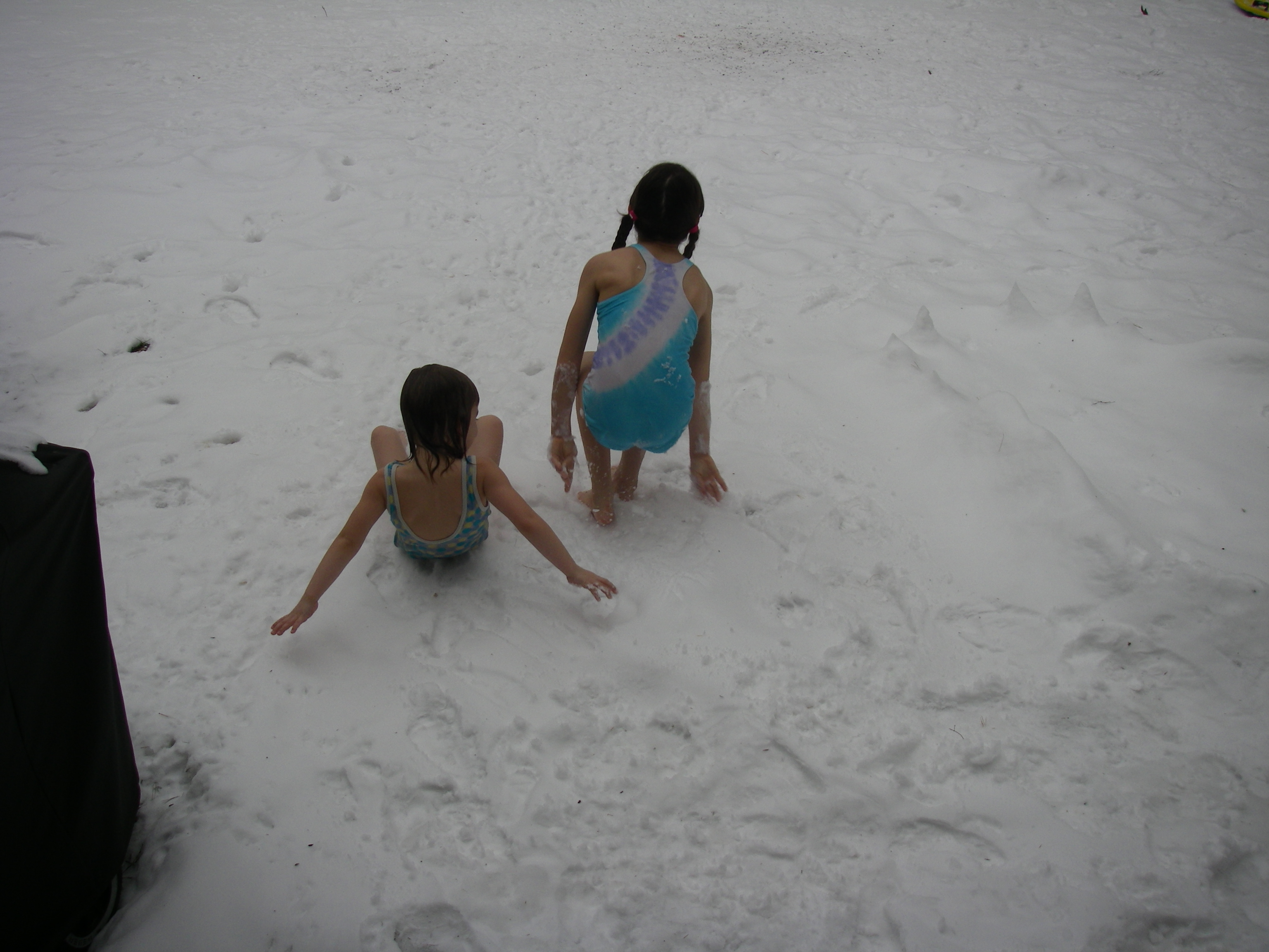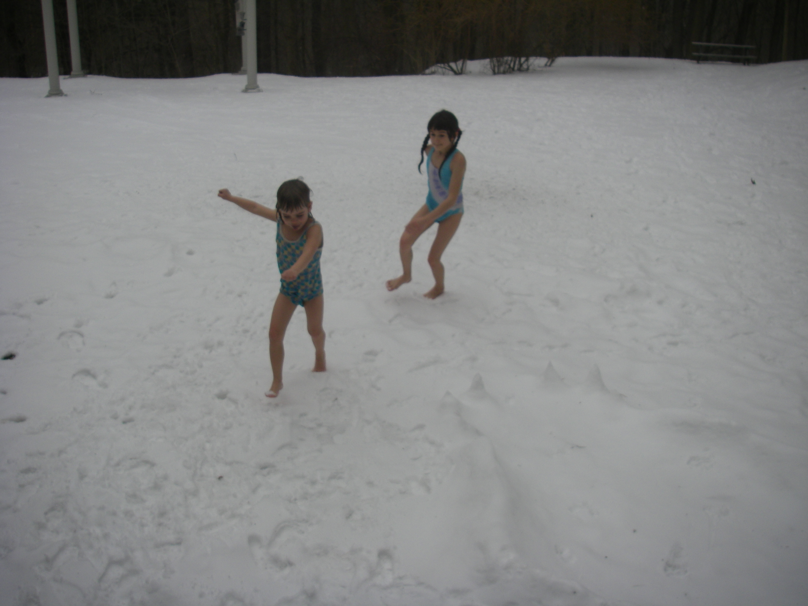 and "snowdiving", "swimming" or rolling in the snow in our bathing suits: