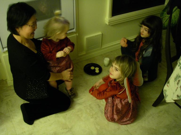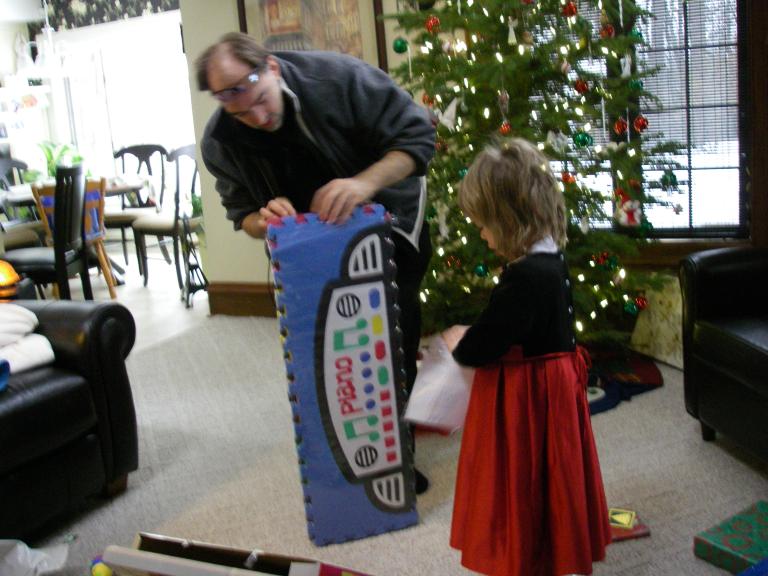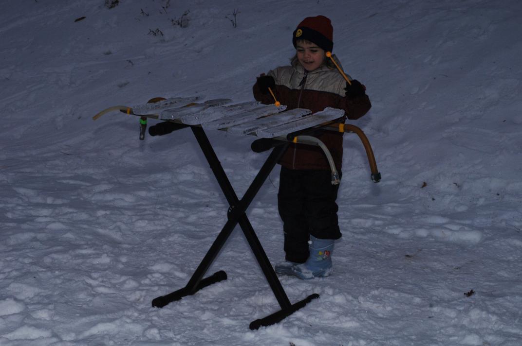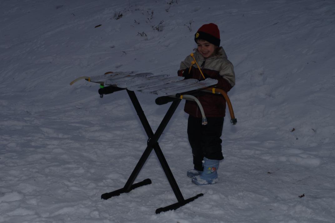 Christina (age 5) builds a pagophone for her skates: