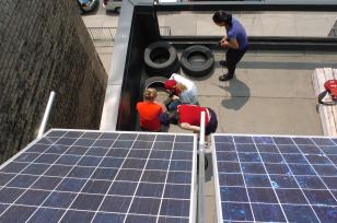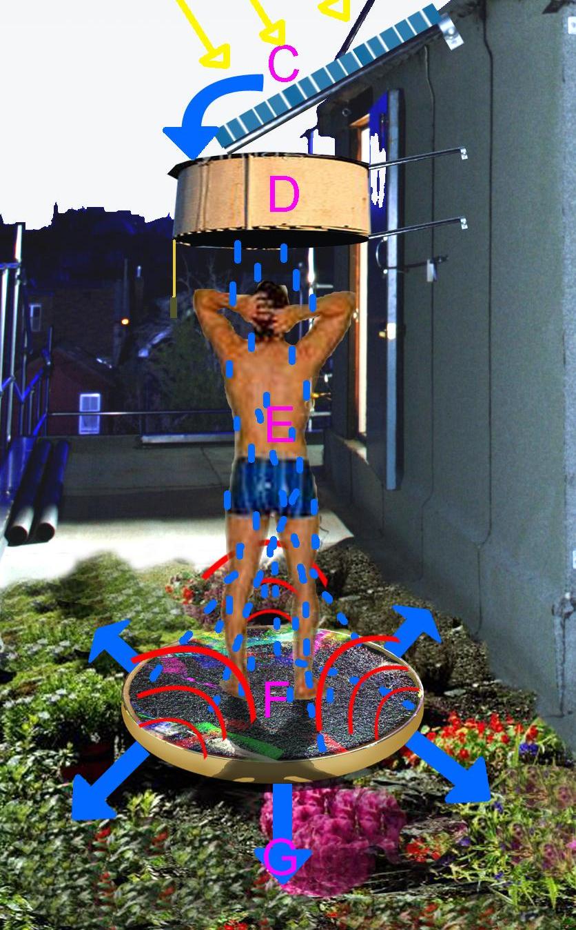 Blue roofs combine sun, wind, and rain, to to capture water runoff, and use it for showering, cooling off (building as well as occupants), as well as solar energy.