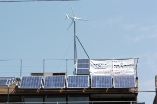 view from the ground (windmill as seen from back parking lot but greenroof not visible from here)